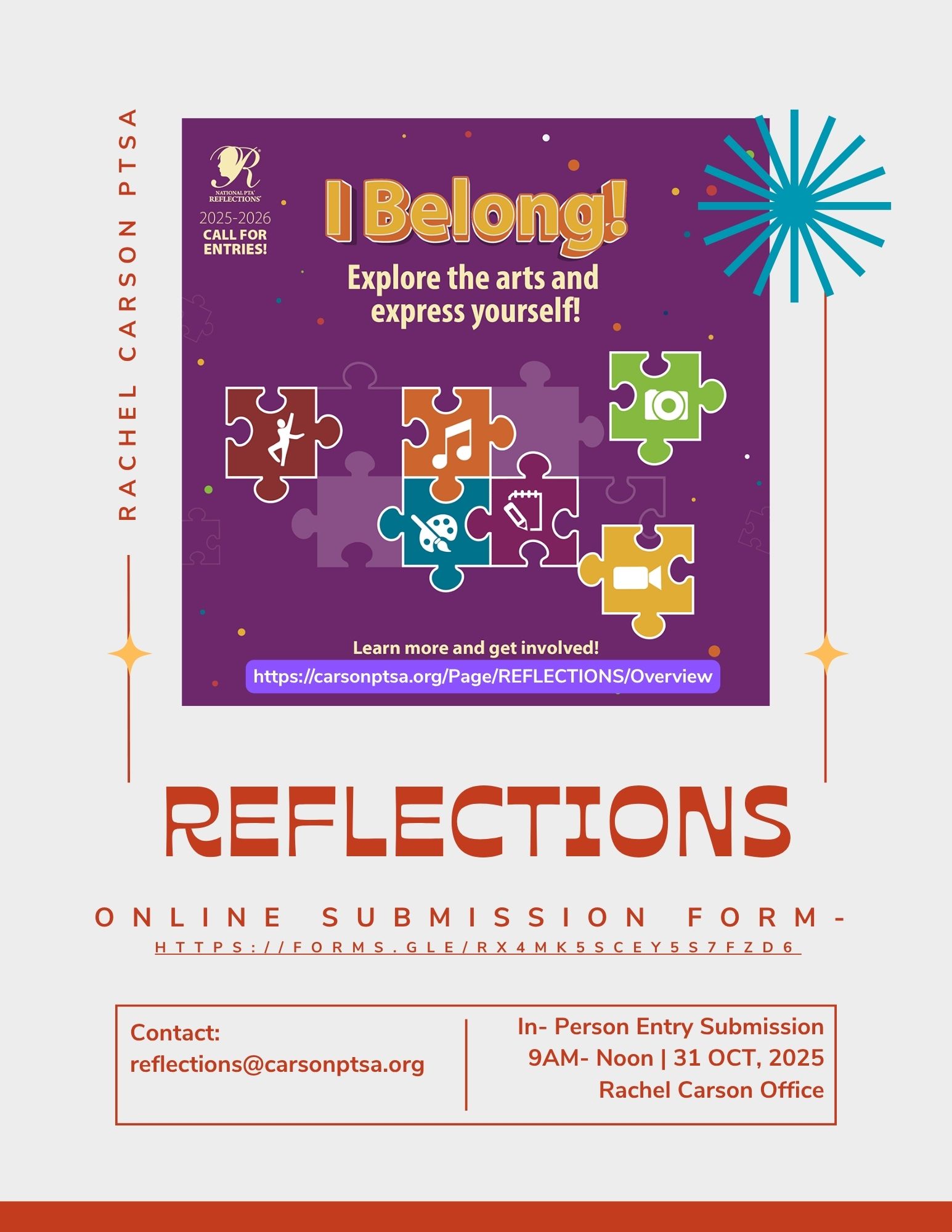 We are excited to share that it’s time once again for the National PTA Reflections Arts Program — a wonderful opportunity for students to explore their creativity and express themselves through the arts.